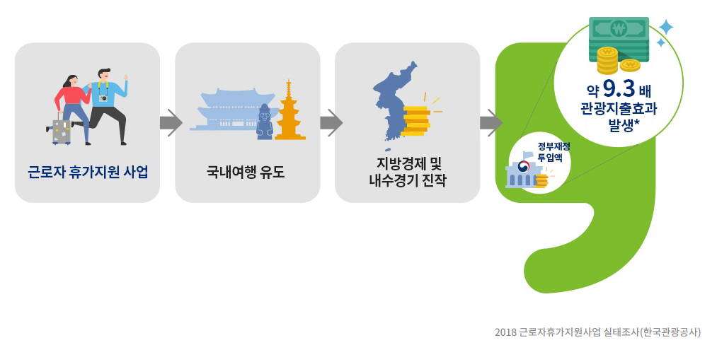 근로자 휴가지원 사업은 직장 내 자유로운 휴가문화 조성을 위해 기업과 정부가 함께 근로자의 국내 여행경비를 지원하는 사업입니다.