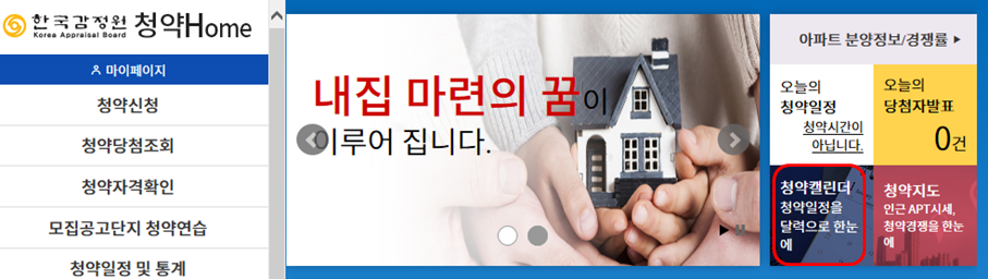 1. 청약캘린더를 클릭합니다.