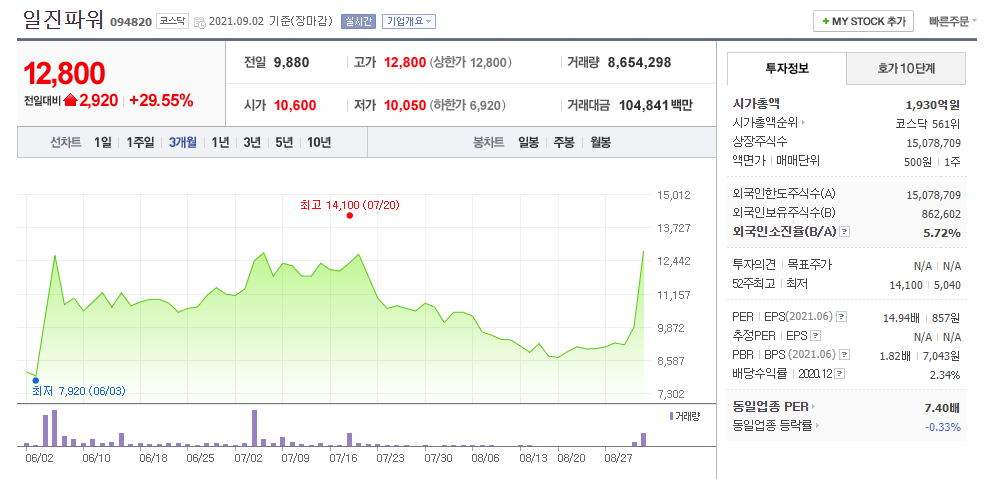 일진파워는 한국원자력연구원의 국책과제 주관기관과의 주요 파트너사로 원자로 및 관련된 기기개발, 설계 제작과 고부가가치의 핵융합설비 연료 저장기술 상용화, 화공기기 제작 및 원자력 기기의 제작 등 기술개발에 참여하고 있으며 소듐 열유동 종합효과 시험장치 제작에 공급계약을 체결한 바 있어 투자자의 관심이 몰린 것으로 풀이된다.